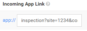 App links can include parameters by using query string syntax. (e.g. amplus://inspection?site=1234&condition=2) where site is the first parameter's name and 1234 is its value.